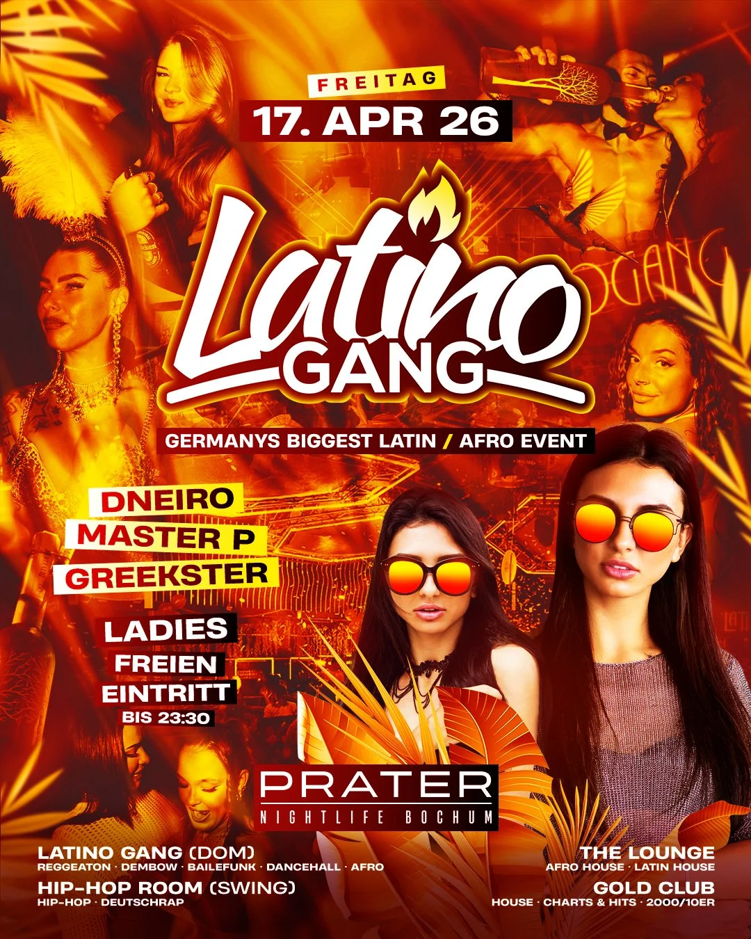 Alle Latino Gang Events sind ausnahmslos ab 18 Jahren. Bitte bring unbedingt einen gültigen Ausweis mit – ohne Ausweis kann es beim Einlass schwierig werden.